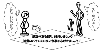 丈夫な骨のために「カルシウムさえ摂ってい れば大丈夫」というわけではありません。年齢 ごとの適正体重を知り、その体重を維持するこ と、そして、そのために適量でバランスの良い 食事を心がけることが大切です。