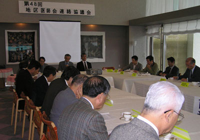 今回の地区医師会連絡協議会は濃い霧の中、 やんばるの自然が満喫できる嵐山ゴルフ場のコ ンペルームで行われた。このように、各地区医 師会の理事の先生方が一堂に集まる機会は少な く貴重な協議会と思われる。今回の協議事項と して「現在の産婦人科の状況と産婦人科医師確 保に関して」「今後の沖縄における救急ヘリ搬送 について」の2題を取り上げた。いずれも大きな 題であり、活発な意見交換がなされ、50分間と 短い時間の設定では到底協議し尽くせないもの であった。最後に県医師会よりコメントがあり、 玉城副会長は離島僻地医師確保対策委員会の最 終答申が近々出されること、沖縄県における独 特の後期研修システムを作り上げる方針である ことを説明した。また、宮城会長より一生懸命 仕事をしても報われない産婦人科医療や、福島 県のような刑事事件扱いする現状がありやる気 をなくしており、全国的な問題であり国も真剣 に取り組む必要がある。また救急ヘリについて は保健医療協議会のなかでも協議するよう提案 している旨の説明があった。
