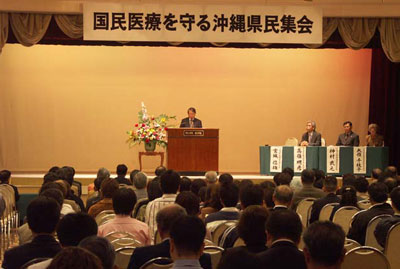 沖縄県医療推進協議会(加盟28 団体)主催の 標記県民集会が去る12 月20 日(火)午後7 時 より、パシフィックホテル沖縄において、加盟各 団体より約500 名が参加して盛会に開催された。