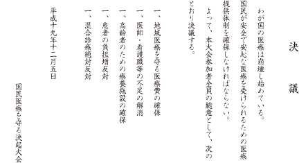 当県民集会は、来年度の予算編成前に医療崩 壊の阻止を望む国民の声を政府に届けることを 目的に、全国医療推進協議会(会長:唐澤人 日本医師会長)の活動と連動して開催されたも のである。