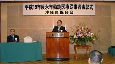 去る11 月22 日(木)午後7 時30 分からパ シフィックホテル沖縄に於いて、平成19 年度 永年勤続医療従事者表彰式が行われた。