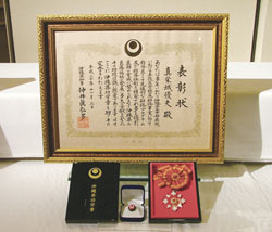 以上のようなご功績が認められ、平成17 年 には、瑞宝小綬章を受章され、この度は、沖縄 県功労章受章の栄に浴されております。
