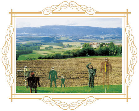 ロマンチック街道の田園風景との紹介ですが、 ヨーロッパの案山子の醸し出す風情に、日本では 感じられない“ユーモアと癒し”を感じてシャッ ターを切ったとのこと。本来、案山子は害鳥を嚇 かすための仕掛けですが、所変われば旅愁をそそ るモニュメントにもなるのかと、タイトルからも 十分に納得できる作品かと思います。南部医療セ ンターの回廊には、村田先生の油絵の風景画が何 点か展示されていますが、絵心がある者にして許 された写真の出来映えかと感心するばかりです。