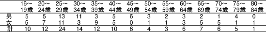 表1 喘息にて救急外来を受診した患者(16 歳以上、2008 年12 月の2 週間)の年齢分布