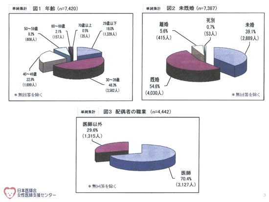 調査では施設における女性医師の常勤・非常 勤の割合や育児中の女性医師の勤務や受入経 験、また、勤務条件や女性医師へのサポート体 制等について現況を伺った。