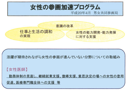 ≫再就業、再研修及び育児支援情報の提供 等を希望する女性医師の登録を行う。