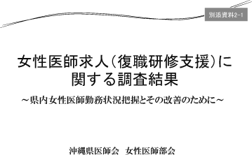 女性医師バンクでは、求人・求職などの情 報をホームページで閲覧、検索し、施設側、女 性医師側から要望があればその間をコーディネ ートしていこうと考えている。また、県が行な っている離島支援ゆいまーるプロジェクトや琉 大病院の専門研修センター等との連携を図っ ていく。約3 年間、県の補助で運営するが、そ の後は医師会の事業として運営できればと考え ている。