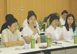 女性医師が就労継続を困難としている点につ いて、女性医師側の視点や病院側の視点から、 それぞれ問題点を挙げて貰い、自由な意見交換 を行った。なお、同懇談会の開催に向けて、事 前に女性医師や施設からあがった意見や要望に ついて報告を行なったあと、意見交換を行った。