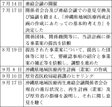 地域医療再生計画については、平成21 年10 月9 日の沖縄県保健医療協議会での意見聴取、 10 月16 日が期限の厚生労働省への提出に向 け、事務処理を進めている。その状況等について、以下のとおり報告する。