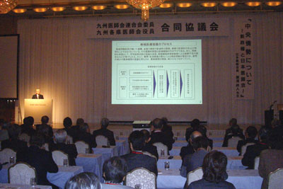 今回の当協議会では、予め九州各県医師会か ら質問等をあげていただいているが、それらを 喫緊の課題として受け止め、日医役員で確認 し、今後早急に取り組んでいきたいと説明され、 スライドに基づき標題による講演が行われた。