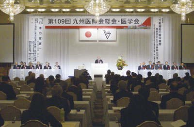 民主党政権誕生に対して、その政策を是とす るものの、個々の政策において是々非々で臨む 決意をしております。是は是、非は非として積 極的に取り組んで参ります。九州医師会連合会 の先生方におかれましては、一層のご理解ご協力を賜りますよう切にお願い申し上げます。さ て、九州医師会連合会におかれましては、毎年 総会が開催され、地域の実情を踏まえ医療に関 わる種々の問題について熱心に検討されてこら れました。その長い歴史と共に、確かな実績と 着実な成果をあげられていることは大きく評価 されるものであります。また、本日から開催さ れます九州医師会医学会は今回で109 回を数え 歴史と伝統ある医学会であります。本医学会を 生涯教育の場として会員の皆様が各分科会の参 加等を通じて研鑽を積まれますことは地域医療 の充実発展に多大な貢献をもたらすものと確信 しております。今回の連合会総会・医学会並び に各分科会が一層実り多いものとなりますこと をご期待申し上げますと共に各種記念行事を通 じて会員の皆様が大いに親睦を深められますこ とを併せて祈念申し上げます。