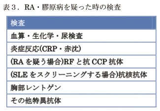 ■早期関節炎: RA ・膠原病のスクリーニング 検査(表3)
