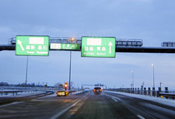 ○緊急車両通行証にて真っ暗な東北自動車道を 北上、途中4 ヶ所のSA で幸運にも給油するこ とができる。路面は地震の影響で段差や亀裂が あり、さらに夜半には降雪となり明け方には路 面がシャーベット状となり思うようにスピード を出すことが出来ない。
