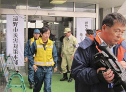 ○ 14 時00 分 遠野市災害対策本部到着。本田 市長、山尾幸司郎健康福祉部長から大槌町の対 策本部に連絡を入れて頂き、行き方についての 注意を受ける(Fig.5)。