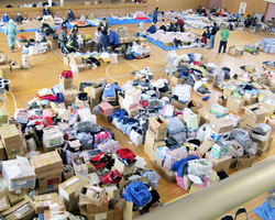 Fig.16 避難所に次々と運び込まれた救援物資。