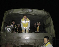 Fig.5 本田市長の見送りを受けて遠野市災害対策本部を後に大槌町へむかう。