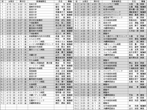 出発式では第1 陣を代表して「我々を送り出 して下さる方々の代表として出来る限りのこと をしてきたい」との挨拶をさせて頂きました。 ご支援いただき送り出して下さった会員の皆様 と事務局の皆様に御礼を申し上げます。大槌町 での医療支援活動は第2 陣へと襷がわたりまし た。そして、被災地の医療が復興し始めるまで はこの襷を次々とつなぎながら派遣を続けるこ とが求められていると思います。被災地の方々 に一刻も早く普段の生活が戻ることを願うとと もに、今後とも沖縄県医師会あげてのご支援を 頂きますようお願い申し上げます。