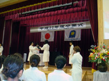 昆布の地(看護専門学校の所在地)は緑と広 い空間、そして坂を下って正門に入る際に、右 方の眼下に太平洋の大海原が目に入るぐらい で、その他何もないところである。校舎と講堂 は広く、公園も隣にあるが、地理的に社会との 繋がりが希薄で半閉鎖的な地域である。それ 故、学ぶ者に取っては良い環境であろうと思う が、一期生は寂しさを紛らわすかのように、年 齢の違う仲間同士で共に未来を語り合ったので あろう。答辞の中にも述べていたが、病気をし た学友、妊娠出産した学友、そして親の病死等 を乗り越えてきた学友らと共に励ましあい、連 帯意識が自然と芽生え、同志としての強い意識 が培われてきたのであろう。2 年目の後半から 学外での医療機関での実習がほとんどの様だ が、学校に帰って来て、更に学習するとのこ と。基礎分野360 時間、専門基礎分野540 時 間、専門分野1,000 時間、臨地実習1,035 時間 を短い3 年間で学び単位を取得している。3 学 年の終わりの期間は、早朝に、夕に、教員の指 導のもとに国家試験に臨んだとのこと。校長を はじめ全教員、講師の方々、実習施設の関係者 の方々に心から感謝すると同時に、一期生全員 の合格の吉報を心待ちにしていた。