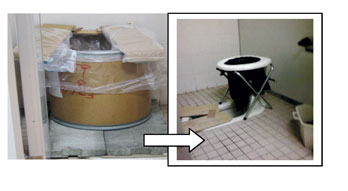 トイレは、手作りのバケツにビニールを敷 き、手洗いの水は、沢から水で手を流しトイレ の外でアルコールの手指消毒を行っていまし た。78 歳のボランティア女性リーダーを中心 に1 日2 回トイレ掃除をしていました。トイレ の設備が不十分なため水分を控えたり、トイレ を我慢することが多く、膀胱炎や便秘の方もい ました。3 月19 日には、簡易トイレと防臭剤が 届きました。3 月20 日には移動トイレが設置さ れました。