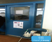 診療は、保健師に問診を依頼し、看護師がバ イタルサインのチェックを行い、医師の診察・ 処方・処置の外来一般診療です。診療時の感染 予防では、手袋とマスク着用で診察を行い、入 り口にアルコール手指消毒、爪切り、マスクを 整備しました。