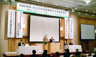 平成23 年度全国医師会勤務医部会連絡協議 会(日医主催、富山県医師会担当)が、「勤務 医の働き方と生きがい(よりよい就労環境を求 めて)」をメインテーマに、去る10 月29 日(土) 富山県富山市で開催されたので、その概要を報 告する。全国から450 名の参加者があった。