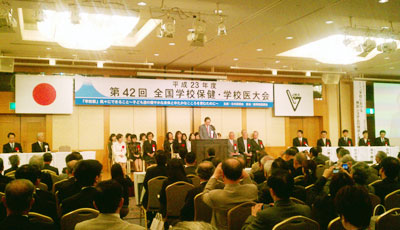 平成23 年10 月29 日、霊峰富士の麓、静岡県のホテルセンチュリー静岡並びにホテルアソシア 静岡にて第42 回全国学校保健・学校医大会が【『学校医』我々にできること〜子ども達の健やか な身体とゆたかなこころを育むために〜】をテーマに開催されました。