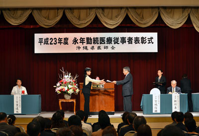 去る11 月10 日(木)パシフィックホテル沖 縄に於いて、平成23 年度永年勤続医療従事者 表彰式が行われた。