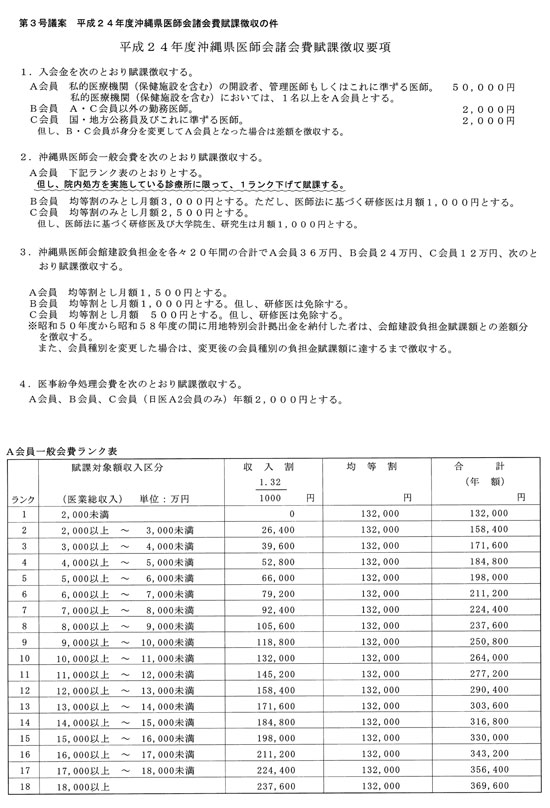 第3号議案 平成24年度 沖縄県医師会諸会費賦課徴収の件