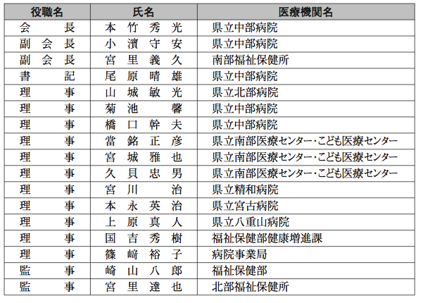 沖縄県公務員医師会の役員が決定しておりますので、次のとおりお知らせします。