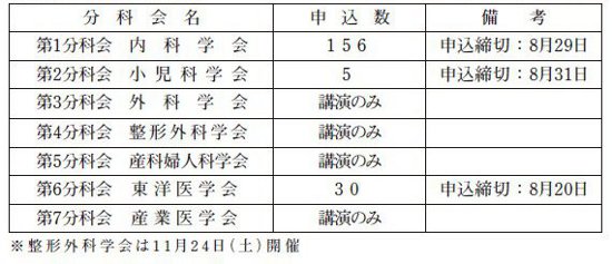 宮崎県の稲倉会長より、来る11 月25 日(日) に開催される標記医学会分科会の出題及び記念 行事の参加申し込み状況について下記のとおり 報告があった。