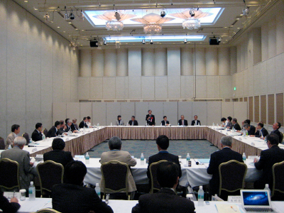 議事進行は、司会が居て、主催者側の挨拶する方がおり、議事を進行する座長の3 名から構成 されていた。協議事項は10 項目で、その内3 項目が同じ内容にて、一括で検討された。1 項目に ついて10 分、提案県から趣旨説明をし、2 〜 3 の他県から追加の意見や質問がされ、その後日医 の担当常任理事よりのコメントがあった。同じ内容の3 議題に関しても各県から趣旨説明があり、 全部で12 分を振り分けていた。議題(1)が当県からの提案で、冒頭に台風17 号の影響で、7 人出席の予定の理事者が2 名しか出席できず、各部門でご迷惑をかけますがご理解の程よろしく お願いしますと述べ、趣旨説明に入った。介護保険領域は協議事項(4 ― 6)の地域包括ケアシス テムに課題が集中し、地域包括支援センター事業と在宅医療連携拠点事業とが重なり一体化する 可能性があり、その過程として地域の先生方が中心的役割を担い活性化し、地域ケア会議にも出 ていただきたいと、三上裕司常任理事は述べていた。その後3 協議会について、日医担当常任理 事よりそれぞれ日医の考え方も含め要約した報告会があった。