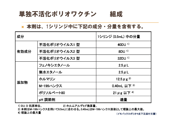 ポリオワクチンが 9 月 1 日から不活化ワク チンに切り替わったとともに、11 月 1 日から DPT + iPV の 4 種混合ワクチンが採用される のを考えると、時宜を得たテーマと開催日であ ったと思う。