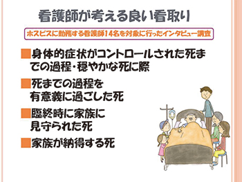 だから、自分達は人を看とることを考えてい ますが、自分の終末はどうありたいかを考えな がら、人をみないといけません。
