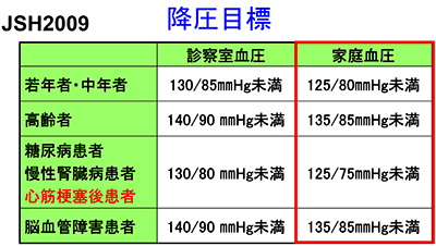 また、患者さんそれぞれの目標血圧を達成 しているかどうかの確認(表1)