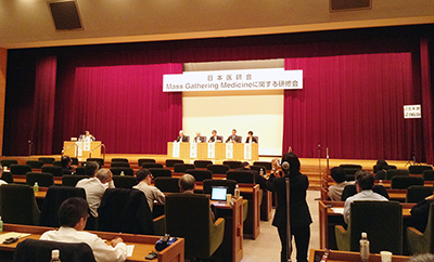 本日の研修会は、オリンピック開催決定以前 より計画していたものであるが、開催の決定に より一段と研修の重要性を帯びて来た。さらに、 Mass Gathering における災害医療対策も国内 外を問わず非常に重要になってきている。日本 医師会が医師の職能団体として、大規模な震災 対策やMass Gathering 対策に全力を尽くして いかなければならないと考えており、本日研修 会を開催した。