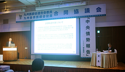 本協議会では、横倉会長から中央情勢をお伺 いするが、例年、予め、日医に対する意見、要 望を、九州各県にご照会し、それらに対する日 医の見解も含めて、お話をお伺いしてきた。