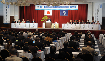 第113 回 九州医師会連合会総会の開催にあ たり、日本医師会を代表して一言お祝いのご挨 拶を申し上げます。